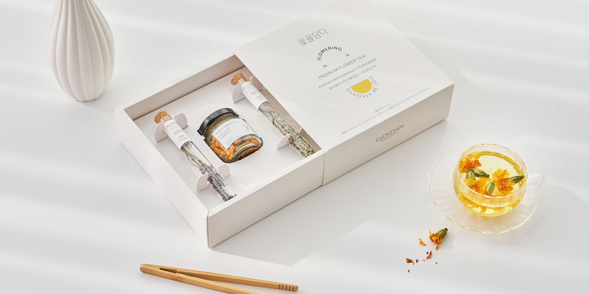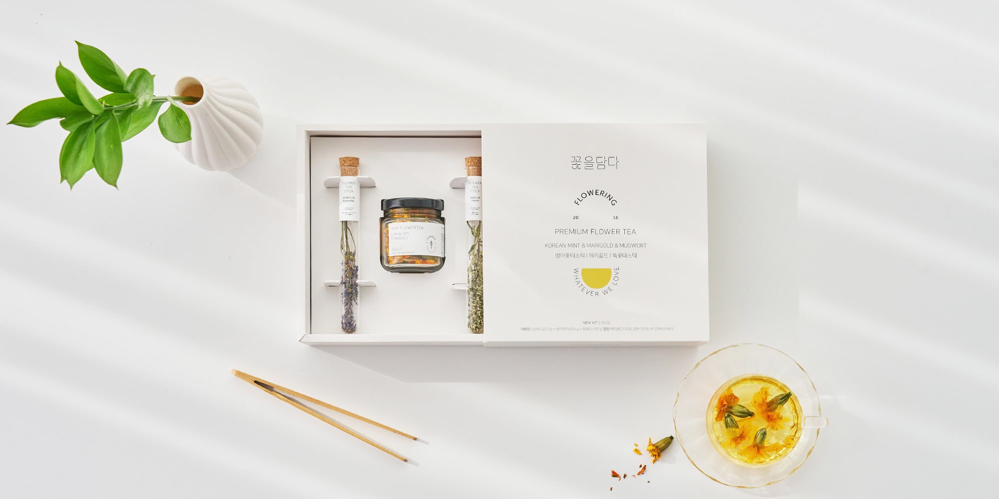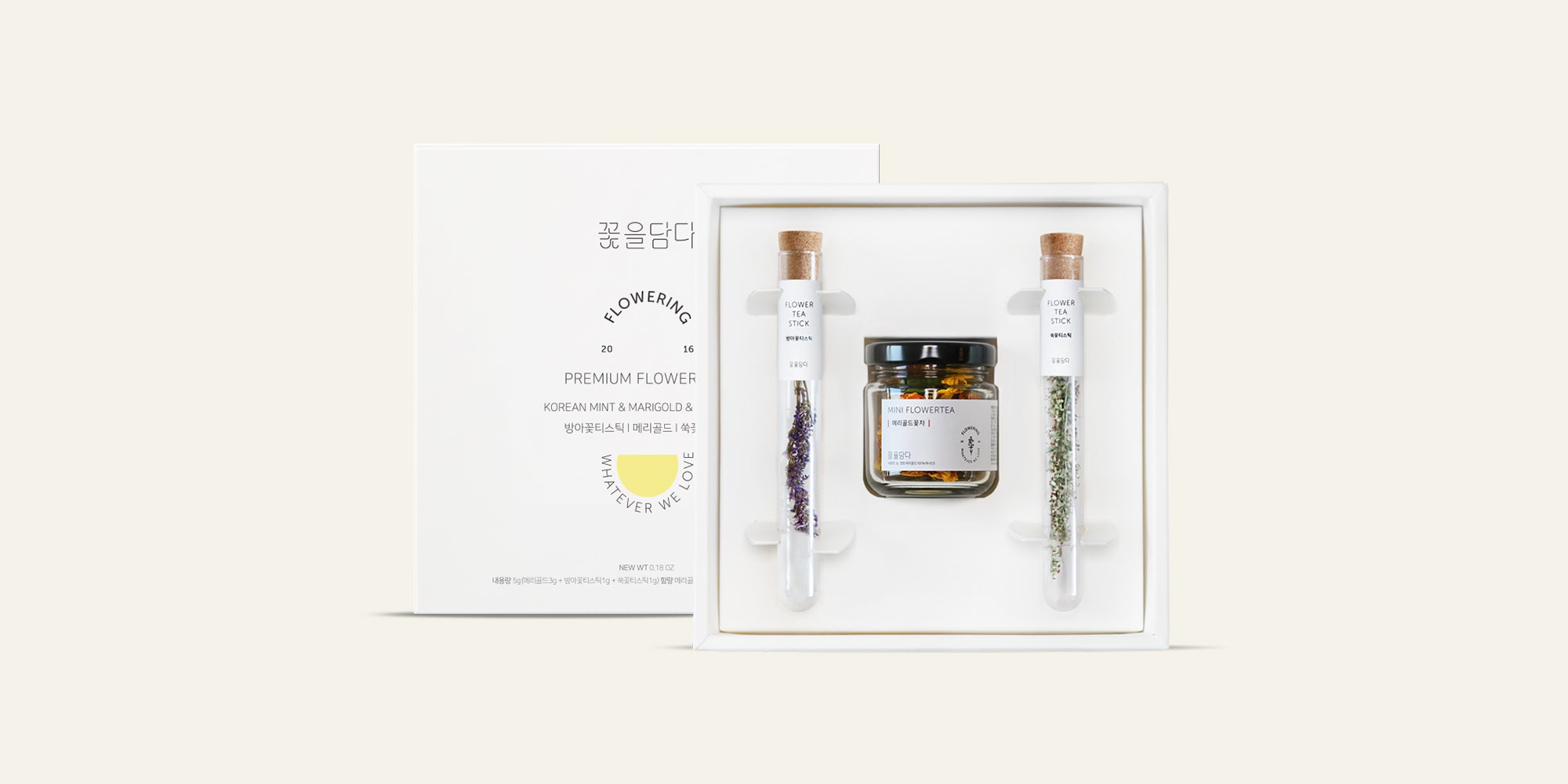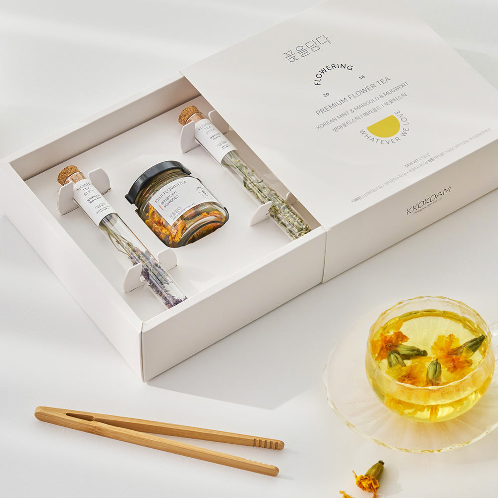 This gift set consists of the most popular original marigold flower tea in a flower bud shape and two types of flower tea sticks, making it a great gift set to experience various types of flower tea. In Korea, the time and process of brewing flower tea is considered a "healing" ritual. Our tea culture involves placing the flowers in a beautiful mug, slowly pouring boiled water over them, and savoring the fragrance and warmth of the tea.