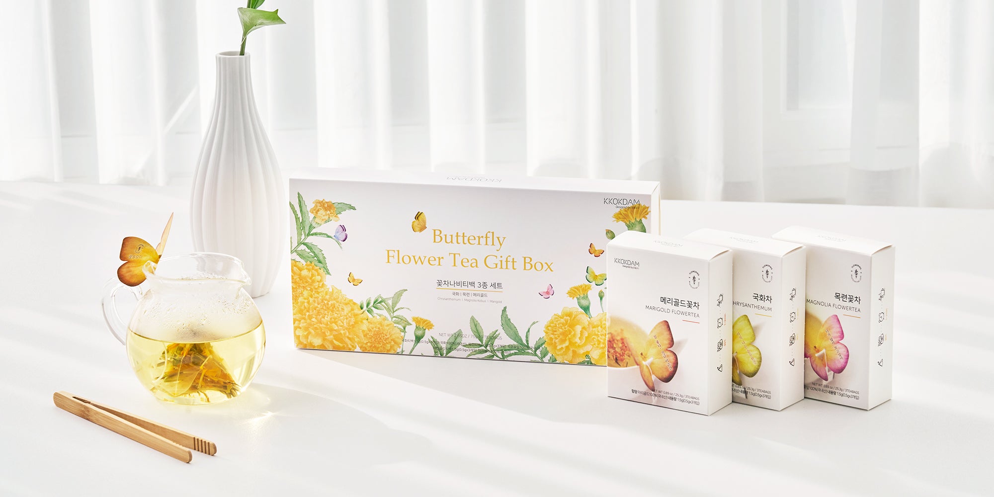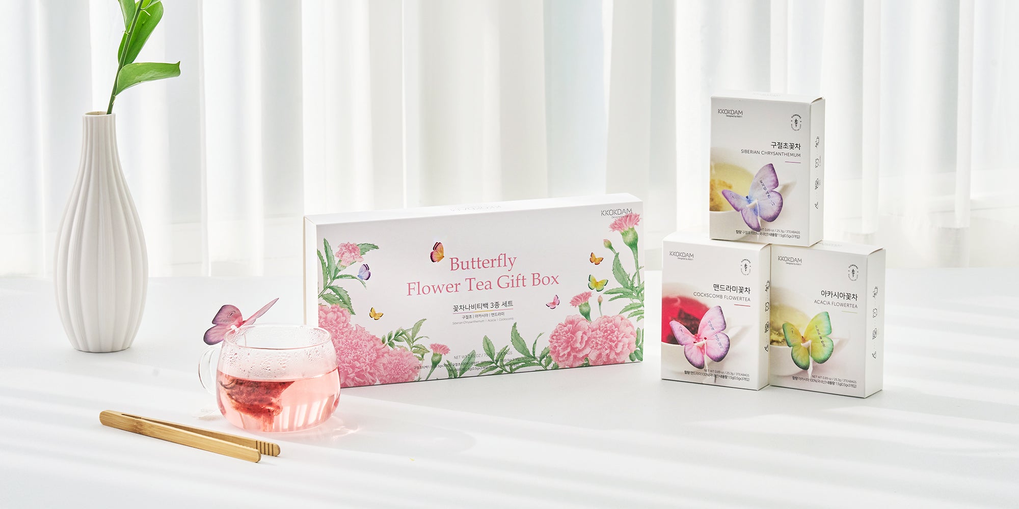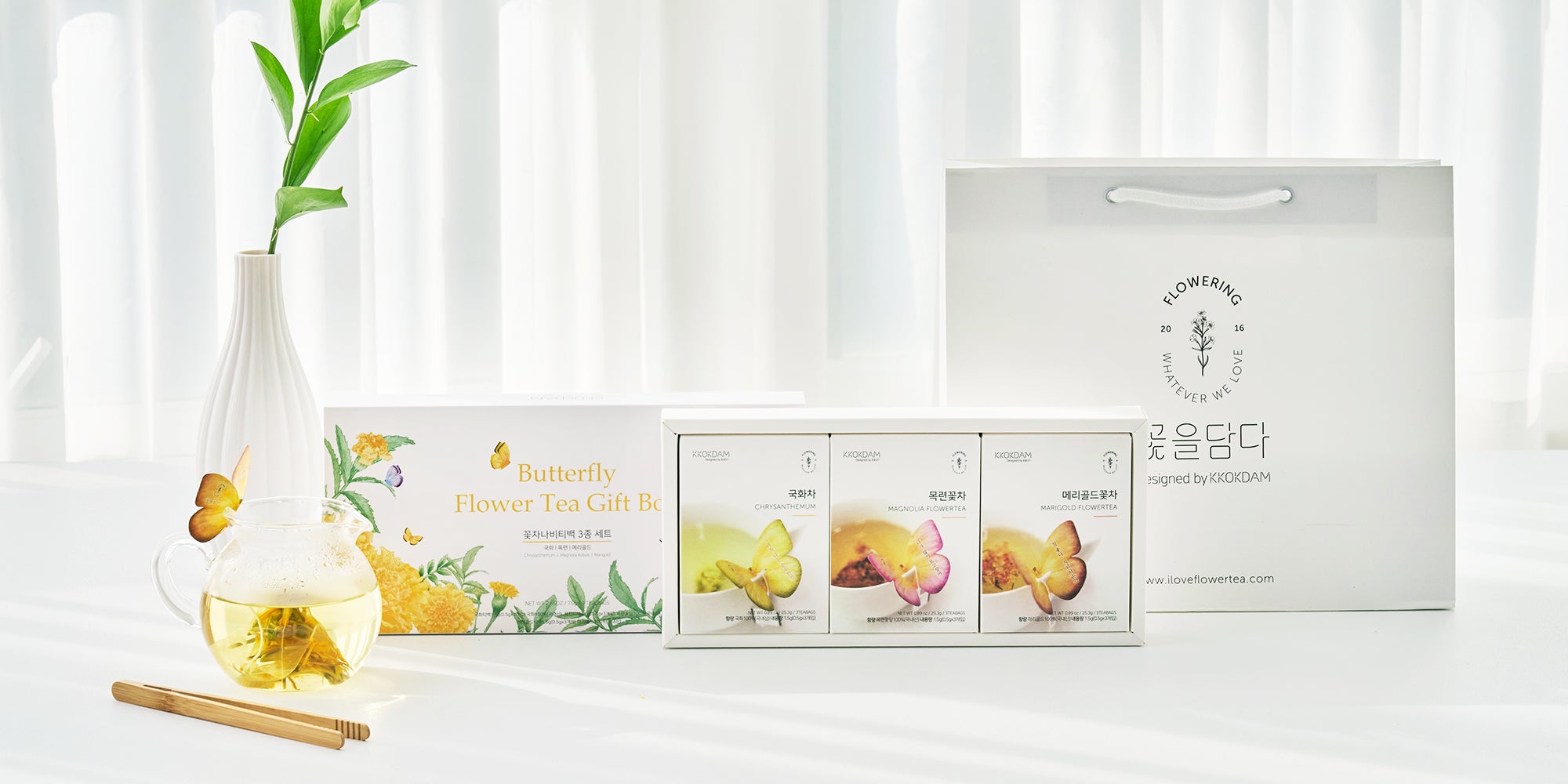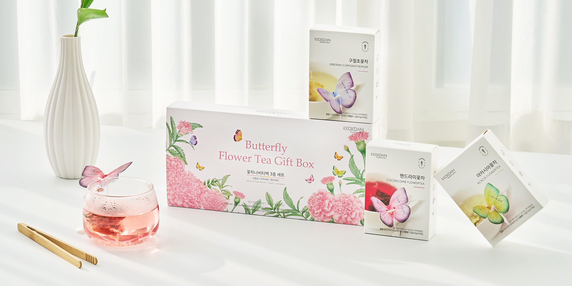 The Butterfly Flower Tea Bag Gift Box is a top-selling product in KKOKDAM's wholesale catalog. This elegant gift box includes different varieties of premium tea bags and features an adorable butterfly tea bag holder inside. It's an ideal option for retailers seeking attractive and cost-effective gifts to offer their customers.