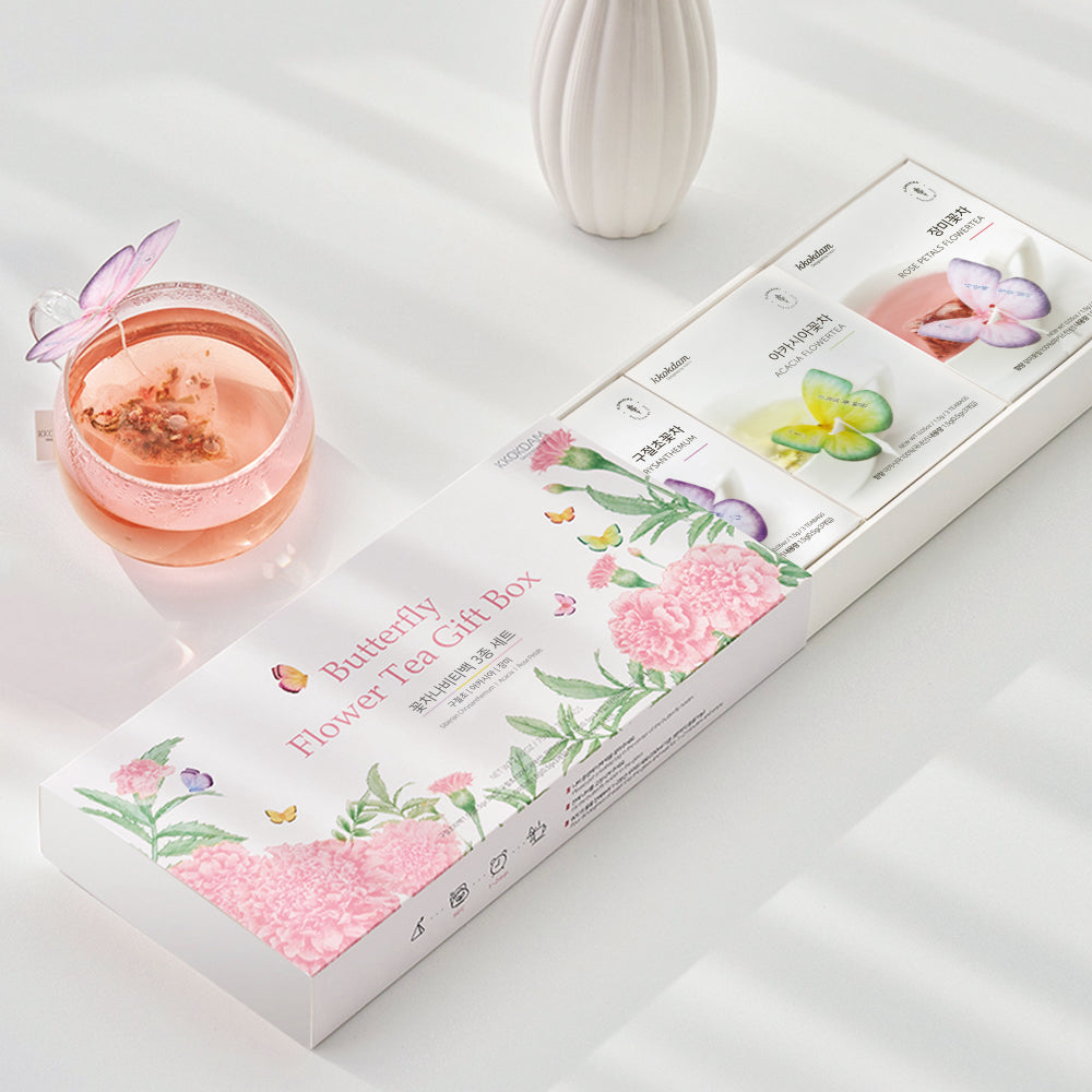 The Butterfly Flower Tea Bag Gift Box is a top-selling product in KKOKDAM's wholesale catalog. This elegant gift box includes different varieties of premium tea bags and features an adorable butterfly tea bag holder inside. It's an ideal option for retailers seeking attractive and cost-effective gifts to offer their customers.
