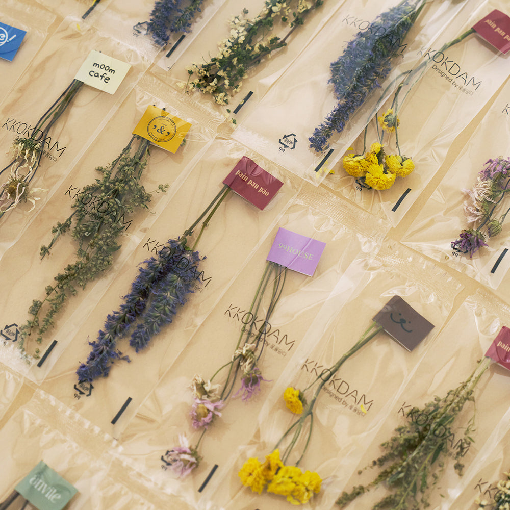 Each pack contains 20 flower tea sticks of a single variety, designed for use in beverages. Choose from five options (Chrysanthemum / Mugwort / Siberian chrysanthemum / Korean mint / Bridal Wreath) to offer a luxurious flower tea experience in your business.