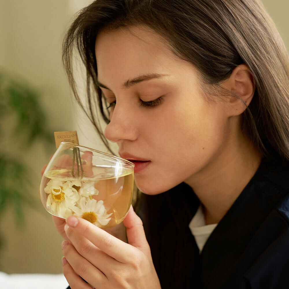 Packaged in single-serving packets, simply tear, pour directly into a glass, add 90-degree hot water, and enjoy fragrant floral tea in two minutes.