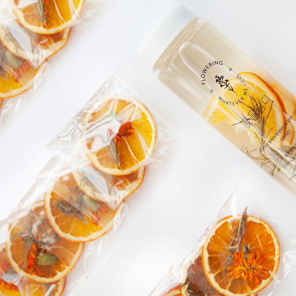 Each pack contains 20 beverage pouches of a single variety. Choose from 3 options (Lemon & Chrysanthemum & Thyme / Orange & Marigold & Rosemary / Grapefruit & Cockscomb & Apple Mint) to offer a luxurious fruit and flower tea menu at your cafe.