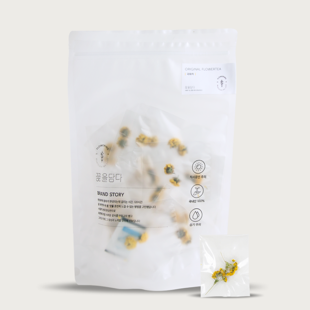 Each pack contains 20 beverage pouches of a single flower tea variety. Choose from 4 options (Magnolia / Marigold / Chrysanthemum / Cherry Blossom) to offer a luxurious flower tea menu at your cafe.